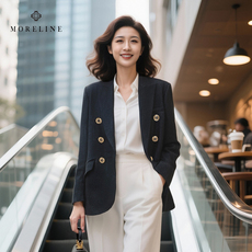 MORELINE沐兰法式高级感双排扣西装女2025年秋新款枪驳领西服外套